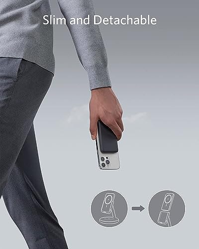 Anker - شاحن لاسلكي (ماج جو) من انكر، قاعدة شحن لاسلكية 633 2 في 1، باور بانك قابل للفصل 5000 مللي امبير في الساعة، أسود، B25A7211، USB