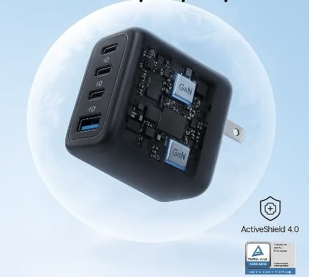 Anker - شاحن زولو 70 وات من 4 منافذ من انكر، شاحن سريع بتقنية جان وصغير الحجم لأجهزة ماك بوك واي باد وآيفون 17 وسلسلة آيفون وجالاكسي S26/S25- (لون أسود) A121C