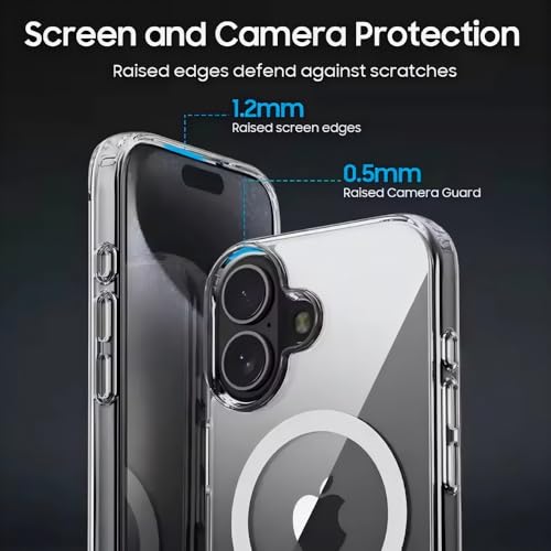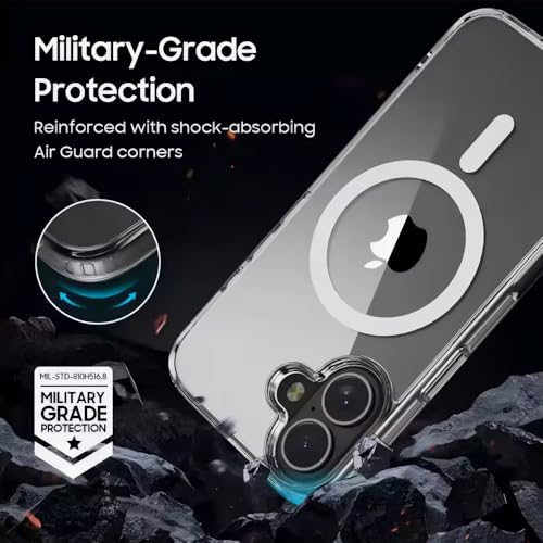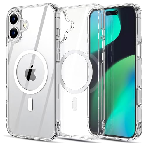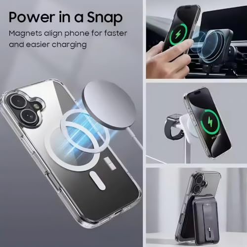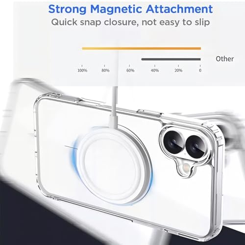 Ankerzende - جراب موبايل مغناطيسي متين متوافق مع تقنية شحن ماج سيف مقاوم للصدمات والخدش ومضاد للاصفرار لموبايل آيفون 16 بلس من انكرزندي، شفاف