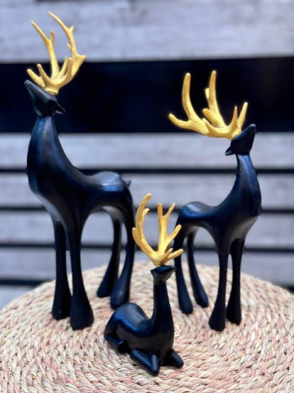 Generic - مجموعة ثلاثية من الغزلان المنحوتة من عنخ هوم سابلايز، مثالية لإضافة لمسة من البساطة (اسود)