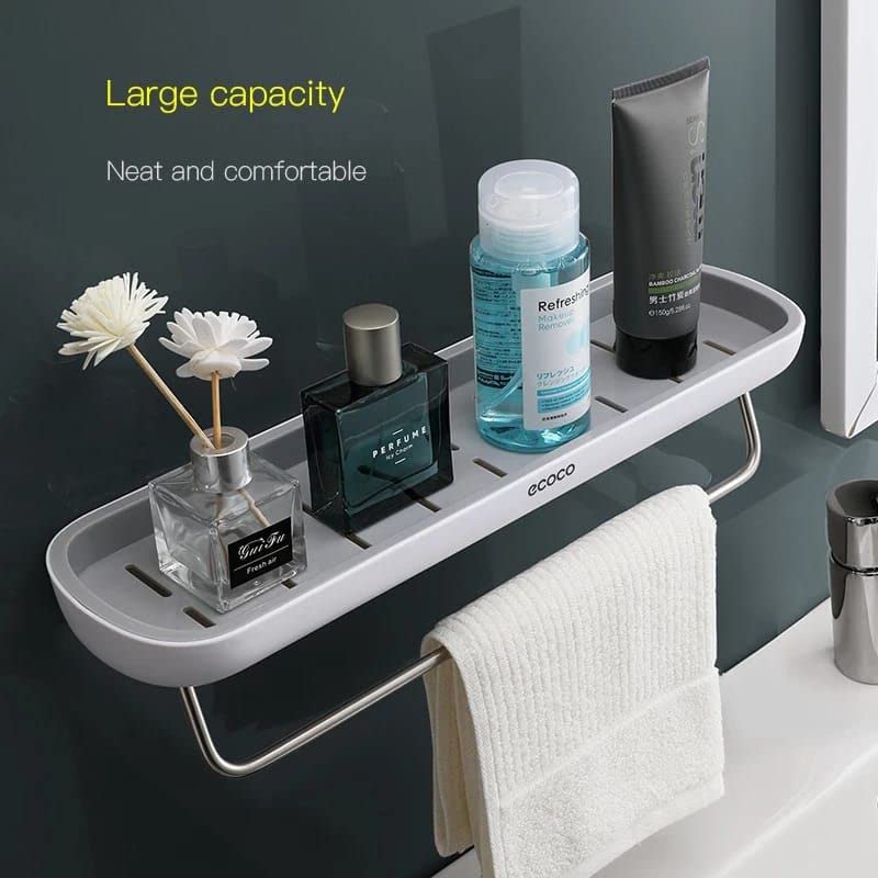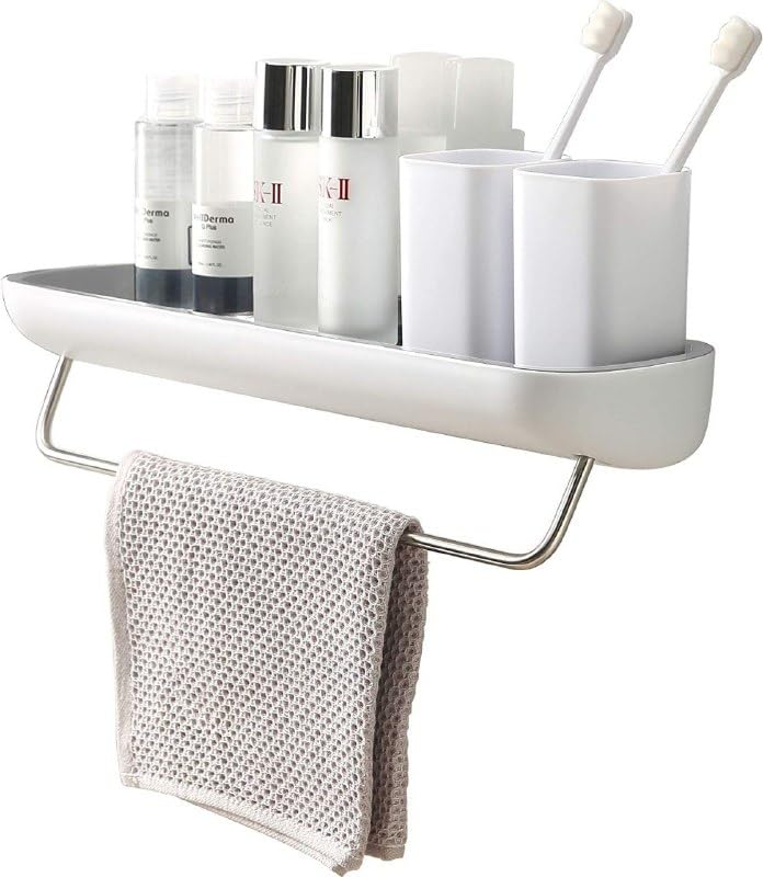 Generic - رف حمام من انخ هوم سابلايز مع قضيب منشفة، منظم تخزين يثبت على الحائط، بلاستيك، سعة كبيرة، تصميم عصري، أنيق ومريح
