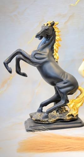 Generic - مجسم حصان زخرفي بتصميم حصان واقف على ساقيه الخلفيتين برأس مرفوع وعرف بلون ذهبي، ديكور منزلي كلاسيكي (أسود)