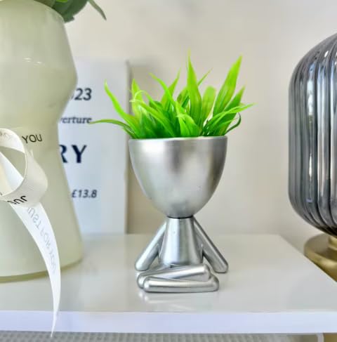 Generic - نباتات عصارية مزخرفة على شكل بشر من عنخ هوم سابلايز، نباتات صناعية لديكور المكتب (فضي)