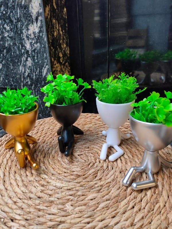 - تصميم فريد: أصيص زخرفية غريبة على شكل بشر بلمسات نهائية ذهبية وسوداء وأبيض وفضية، مثالية لإضافة شخصية إلى أي مساحة