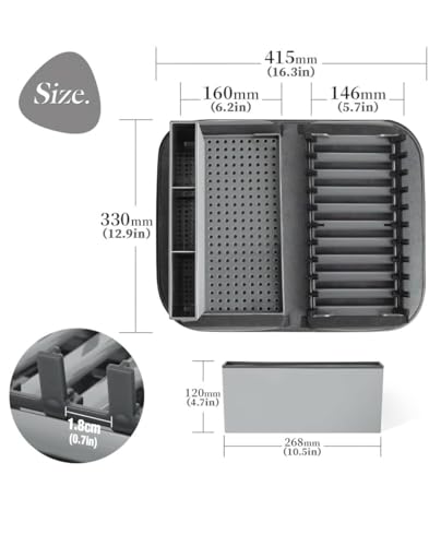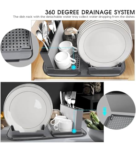 - تصميم موفر للمساحة: رف أطباق رمادي مدمج مثالي لزيادة مساحة الطاولة مع توفير مساحة واسعة للأطباق والأوعية والأكواب وأدوات المائدة لتجف في الهواء بشكل فعال