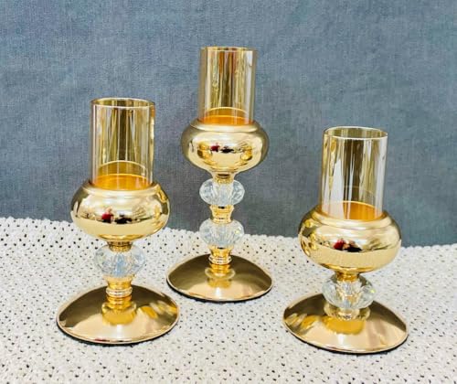 Generic - مجموعة حوامل شموع زجاجية انيقة من انخ-هوم سابلايز، قاعدة من الكريستال والمعدن، لمسة نهائية من الكروم الفضي والذهبي، قطعة مركزية للزينة، مجموعة من 3 قطع (ذهبي)