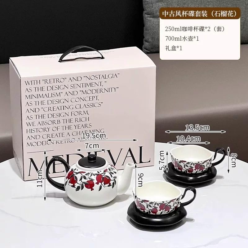 - تتضمن المجموعة: مجموعة كاملة مع إبريق شاي وكؤوس شاي متطابقة وصحون سوداء لتجربة شرب الشاي الأنيقة