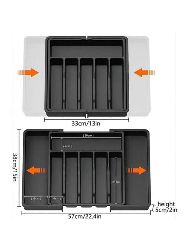 - تصميم قابل للتعديل: منظم درج قابل للتوسيع يمتد من 33 سم إلى 57 سم في العرض، مثالي للتخصيص حسب حجم درجك