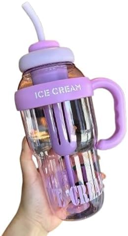 Generic - زجاجة مياه ايس كريم اكريليك مع ماصة من انخ هوم سابلايز، كوب بلاستيكي شفاف سعة 1300 مل، متوفر بالوان متعددة (ارجواني)