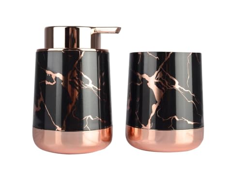 Generic - مجموعة اكسسوارات حمام فاخرة بتصميم رخامي من انخ هوم سابلايز، مجموعة من قطعتين، مصنوعة من مادة الاكريليك، مجموعة موزع صابون ديكور عصري (اسود)