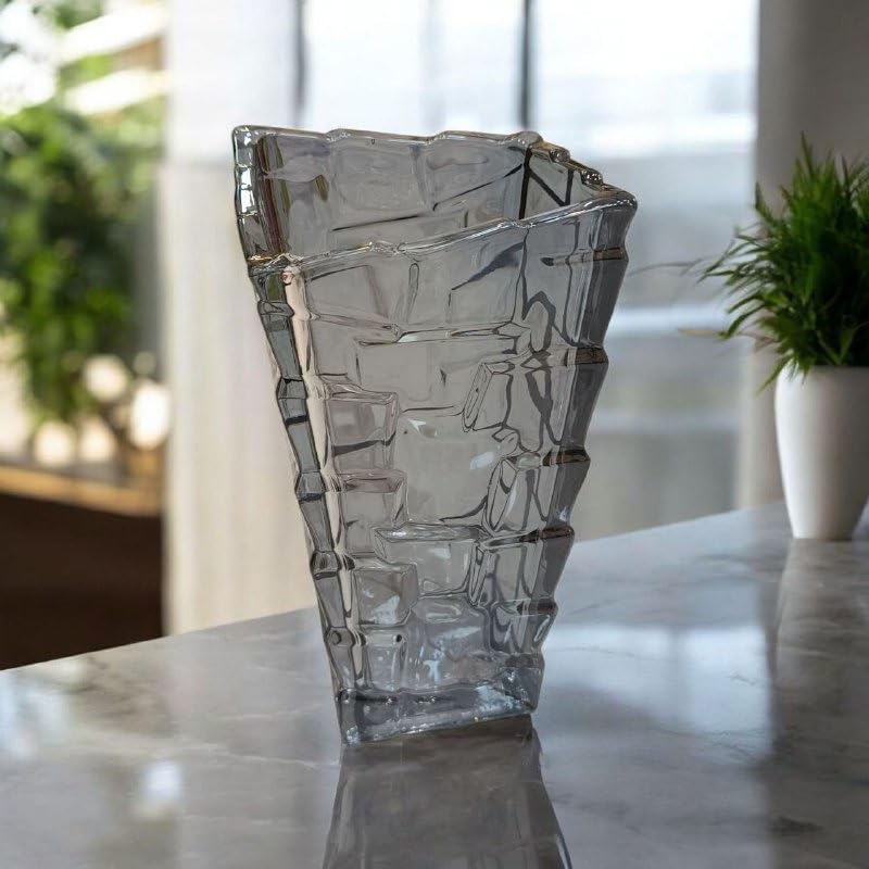 - تصميم فاخر: مزهرية من الزجاج الكريستالي الشفاف تتميز بأنماط هندسية متطورة وتصميم معماري حديث لإضفاء جمالية معاصرة أنيقة