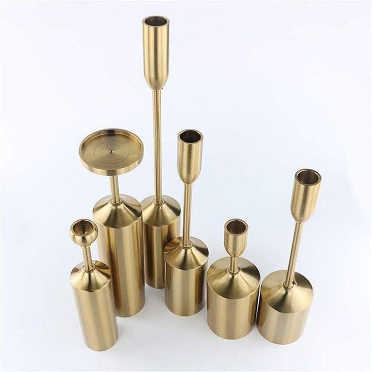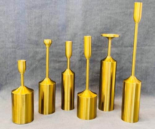Generic - حوامل شمعدان معدنية عصرية، حوامل شموع مدببة أنيقة، لمسة نهائية من النحاس المصقول من انخ-هوم سابلايز، ذهبي، مجموعة ديكور من 6 قطع