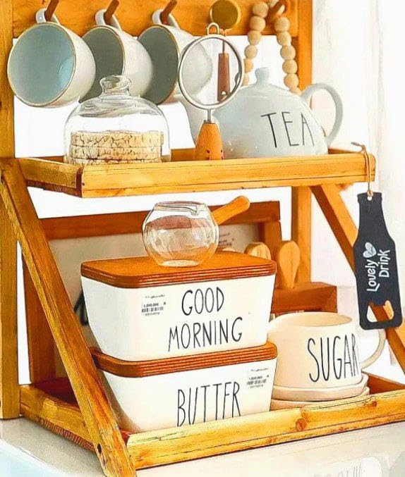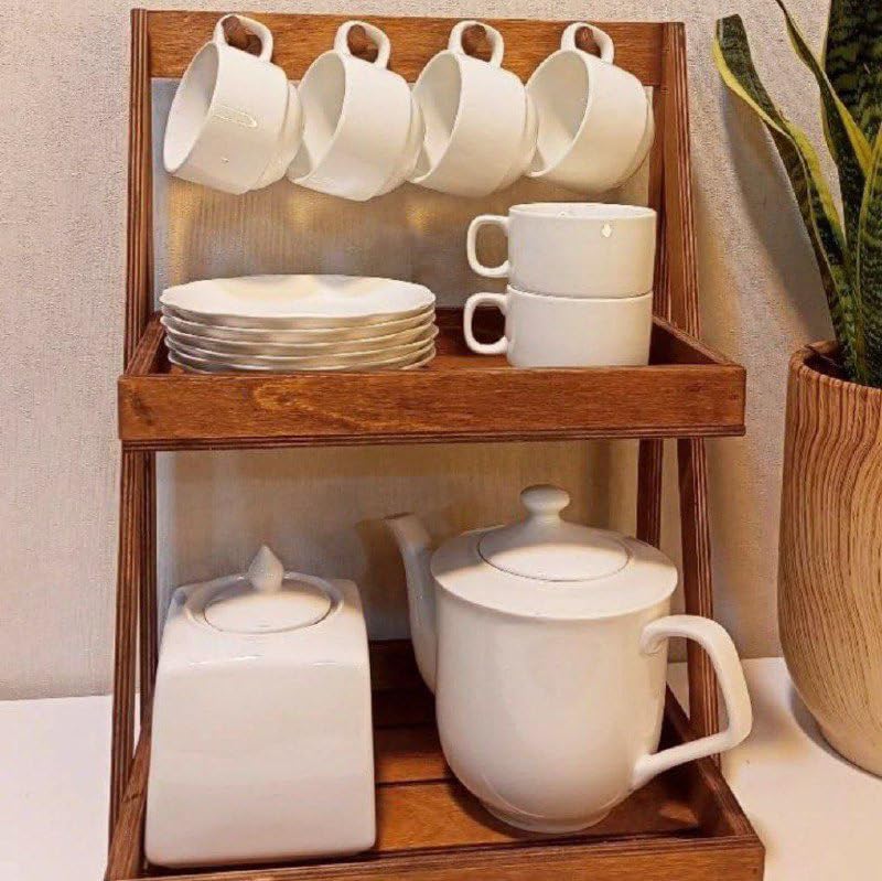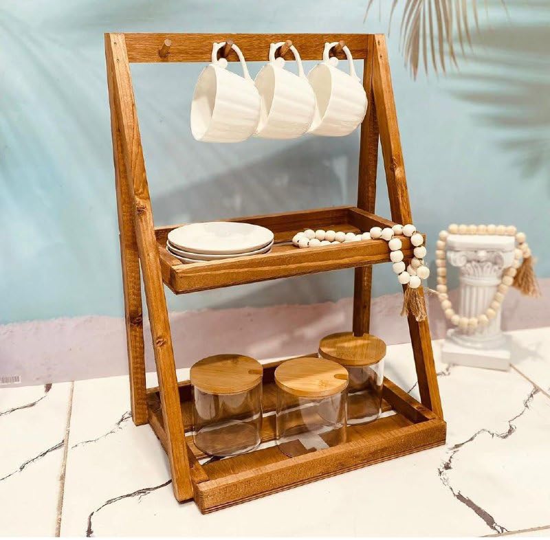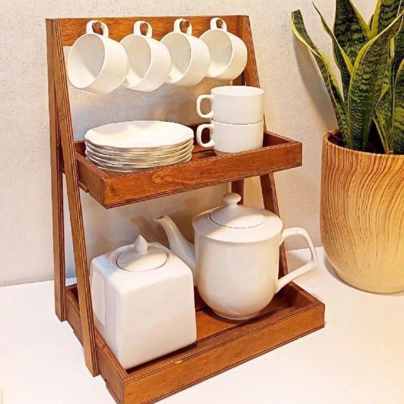 - سعة التخزين: نظام رفوف من طبقتين مع منصات واسعة مثالية للأطباق وأباريق الشاي ومستلزمات المطبخ.