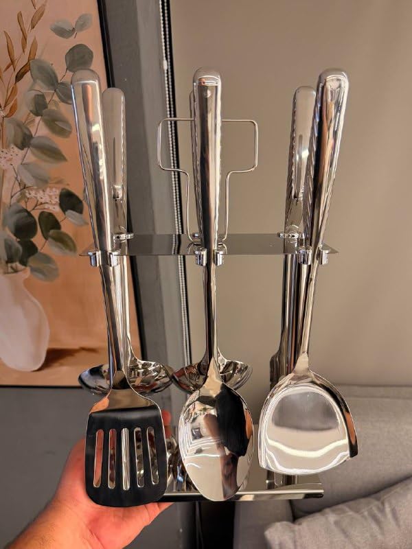 - مجموعة كاملة: تتضمن 6 ملاعق تقديم متعددة الاستخدامات وحامل مطابق للتخزين المنظم والعرض الأنيق