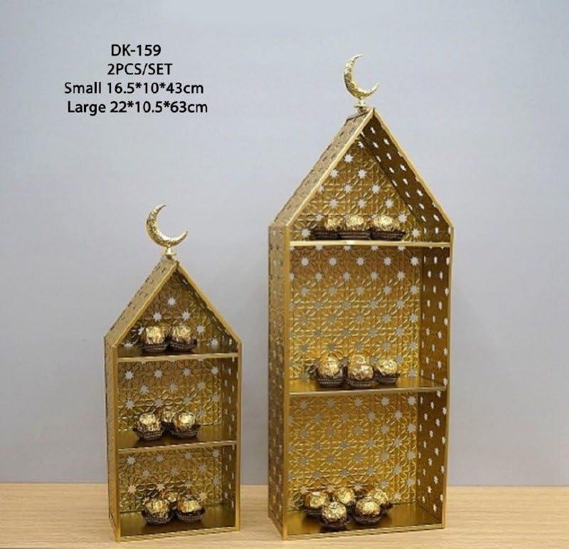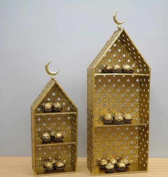 Generic - طقم ارفف زينة رمضان بتصميم هلال من عنخ هوم سابلايز، قطعتان من وحدات رفوف متعددة الطبقات (ذهبي)