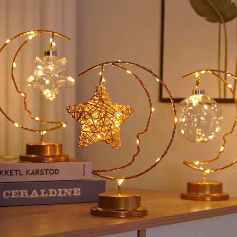 - إضاءة ليد: مجهزة بسلسلة مصابيح LED دافئة مدمجة في كل من إطار القمر وزخرفة زجاجية على شكل نجمة للإضاءة المحيطة