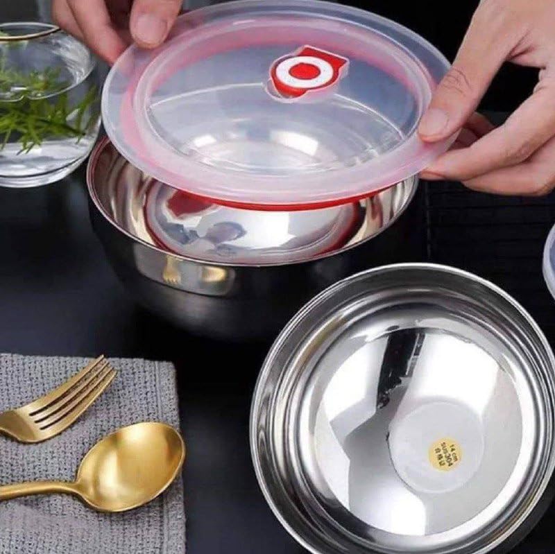 - مادة فاخرة: حاويات من الستانلس ستيل عالي الجودة مع أغطية بلاستيكية شفافة محكمة الإغلاق لتخزين الطعام وحفظه بشكل مثالي
