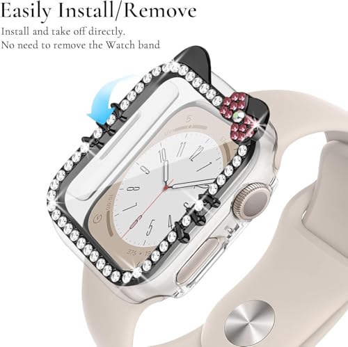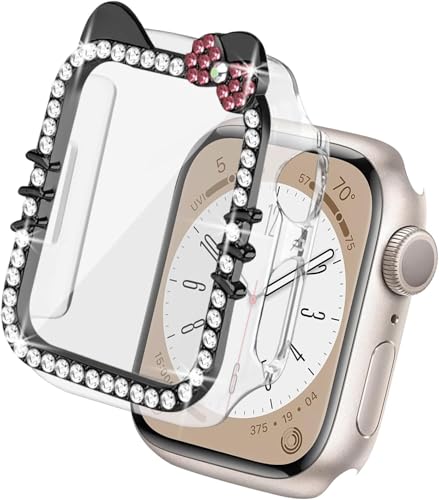 Generic - هيكل كريستال لامع بتصميم فيونكة متوافق مع ساعة آبل من عنخ جيفت شوب (أسود، 42 ملم سلسلة 10)