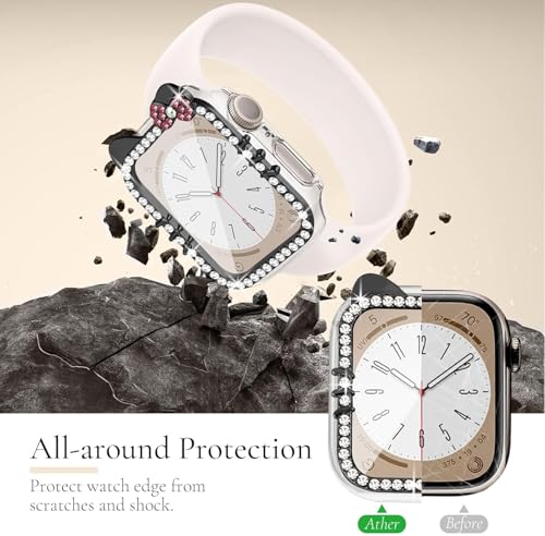 - مزايا التصميم: جراب فاخر مدمجة من الكريستال مع لمسة فيونكة لطيفة لتأطير ساعة آبل الخاصة بك بشكل مثالي مع إضافة لمسة براقة.