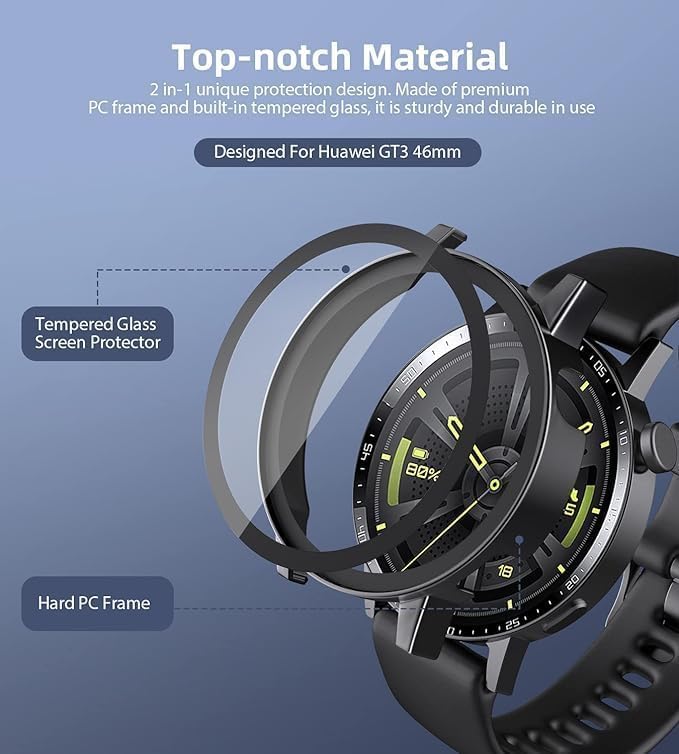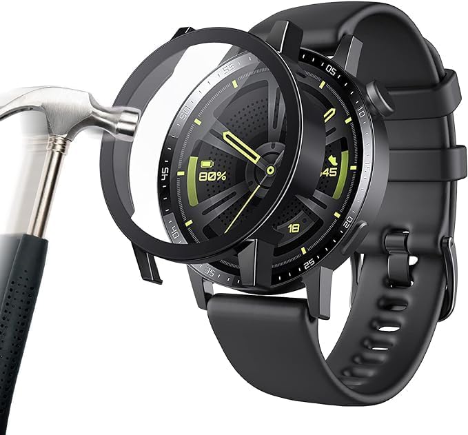 Generic - جراب حماية من انخجيفت شوب متوافق مع ساعة هواوي GT3 مقاس 46 ملم، جراب صلب من البولي كربونات مع غطاء واقي للشاشة من الزجاج المقسى، جراب حماية كامل مقاوم للخدش، اسود