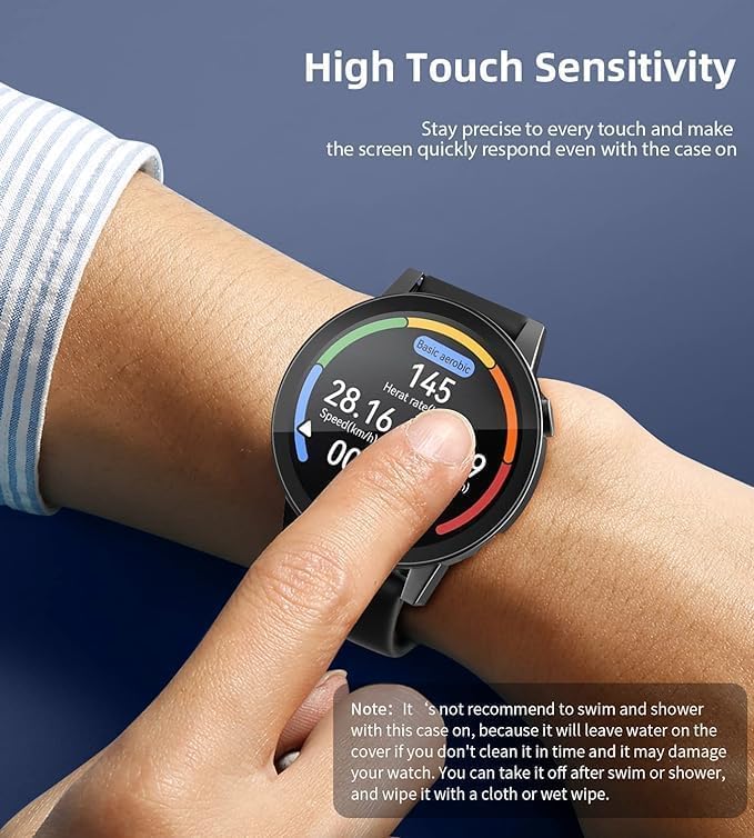 - (ملاحظة): قد ينتج رذاذ ماء بين شاشة الساعة وواقي الشاشة أثناء التمرين، يرجى تنظيف الغطاء في الوقت المناسب. يمكنك خلعه بعد السباحة أو الاستحمام، ومسحه بقطعة قماش أو منديل مبلل