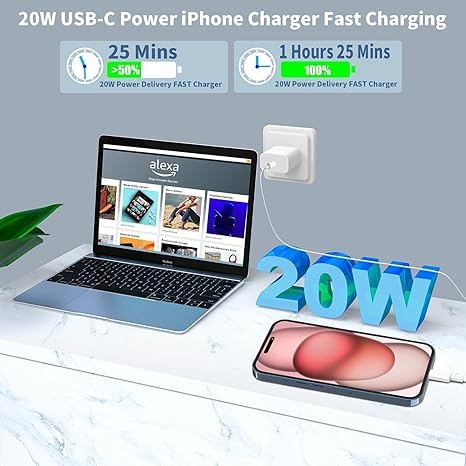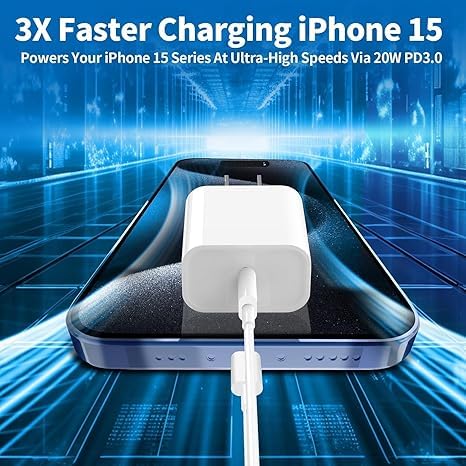 Generic - شاحن حائط سريع الشحن لايباد برو 20 واط بي دي مع كيبل USB C الى بطول 6 قدم لايفون 15 - بلس - - ماكس ايباد - اير - ميني من انخجيفت شوب