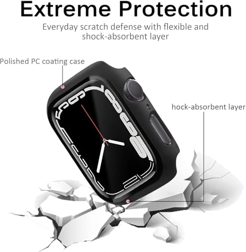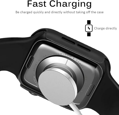 - [مادة ممتازة] جراب متين من البولي كربونات الصلب وواقي شاشة من مادة الزجاج المقوى يحمي ساعتك الذكية بشكل كبير من السقوط أو الصدمات. لا حاجة لإزالة الغطاء أثناء الشحن.