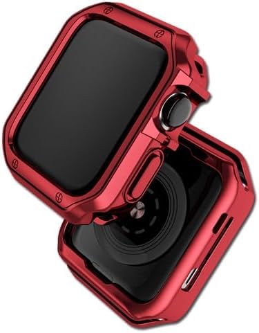 Generic - جراب مطاطي مطلي بالكهرباء لساعة ابل 8 7 6 45 ملم 44 ملم 41 ملم غطاء ناعم لامع من ايه ان كيه اتش جيفت شوب - احمر (44 ملم)، البولي يوريثين الحراري