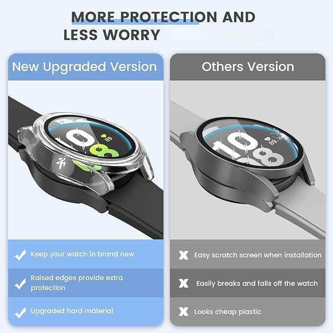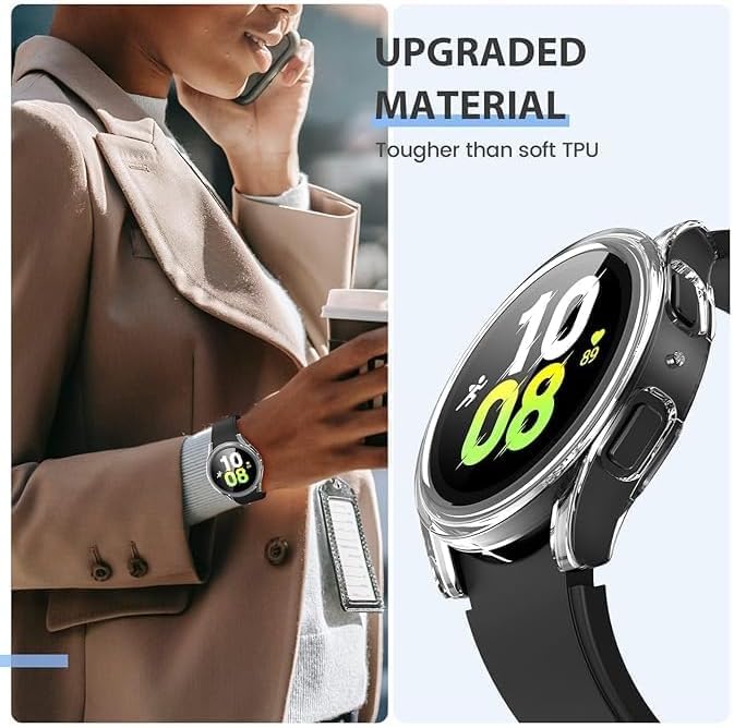- تصميم دقيق: تم تشكيل واقي الشاشة المدمج هذا من واحد إلى واحد وفقًا لساعة سامسونج جالاكسي 5 وسامسونج جالاكسي ووتش 4، ويتم وضع موضع الفتحة بدقة وفقًا لكل تفاصيل الساعة. التصميم المجوف للأزرار يسهل عليك ضبط الساعة. يتميز التصميم الواقي للجراب بارتفاع طفيف فوق واقي الشاشة، مما يقلل من فرصة تلف الشاشة عندما تواجه الساعة أشياء صلبة.