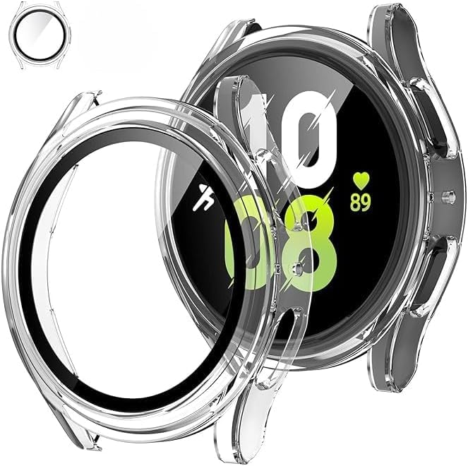 Generic - جراب حماية صلب من البولي كربونات متوافق مع ساعة سامسونج جالكسي 5 2022 و4 2021 مقاس 44 ملم انخجيفت شوب غطاء واقي ممتص صدمات مدمج الزجاج المقسى - شفاف