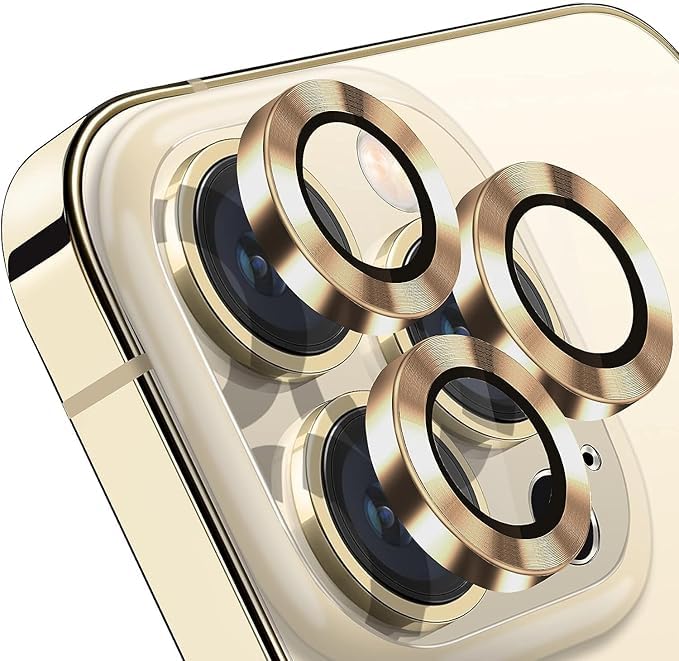 Generic - واقي عدسة كاميرا عالي الجودة لموبايل ايفون 14-13-12-11 من انخجيفتشوب شاشة معدني الزجاج المقسى مقاوم للخدش بدرجة صلابة 9 - 3 قطع ذهبي 13-13 ميني