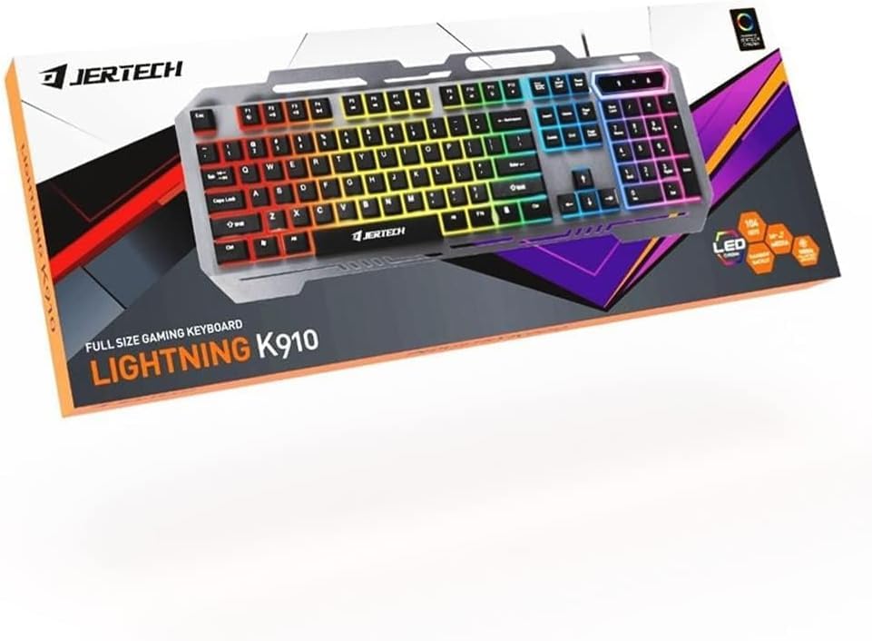 Generic - لوحة مفاتيح ألعاب معدنية K910 مزودة بإضاءة ليد متعددة ومقاومة للماء وتدعم إضاءة RGB من انخ جيفت شوب