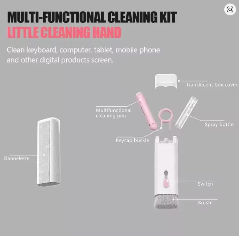 - مجموعة كاملة: تتضمن مجموعة التنظيف 7 في 1 قلم تنظيف متعدد الوظائف وزجاجة رش وقطعة قماش من الفلانيل ومشبك لغطاء المفاتيح وفرشاة ومفتاح وغطاء صندوق شفاف