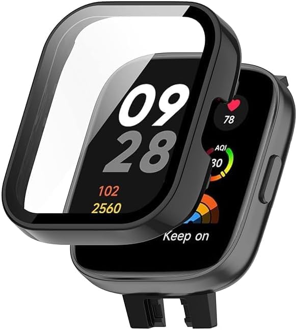 Generic - جراب ساعة واقي بتغطية كاملة من البولي كربونات انخجيفت شوب شاشة الزجاج المقسى متوافق مع ريدمي ووتش 3 - مي لايت بي سي اسود