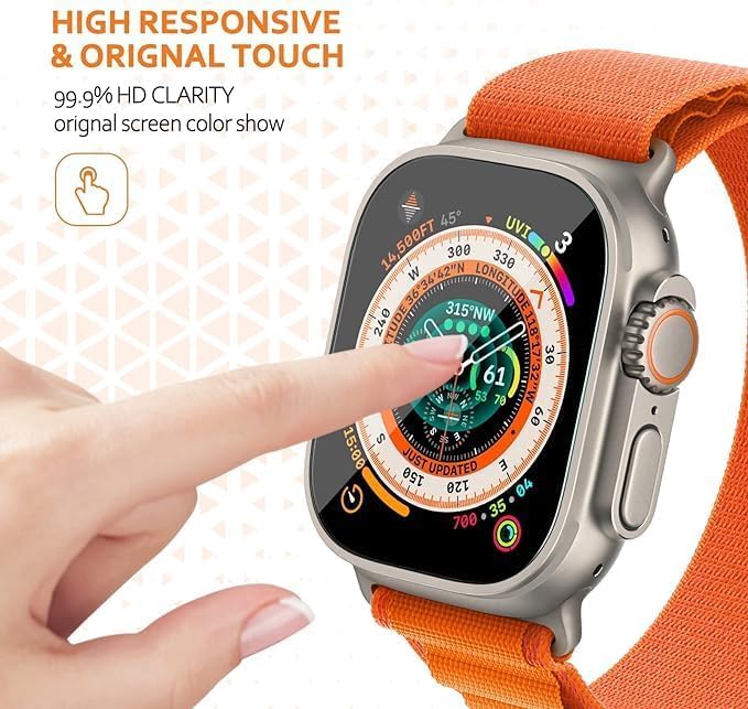 - شاشة حماية عالية الجودة: مادة مستوردة ممتازة لشاشة حماية ساعة ابل الترا 49 ملم هي في صدارة الصناعة. يضفي على ساعتك لمسة ناعمة ومضادة لبصمات الأصابع. زجاج مقوى من الدرجة العسكرية يحمي شاشتك بسهولة من السقوط العرضي والخدوش والاصطدام.