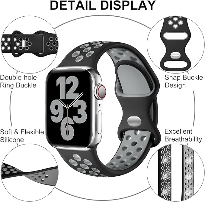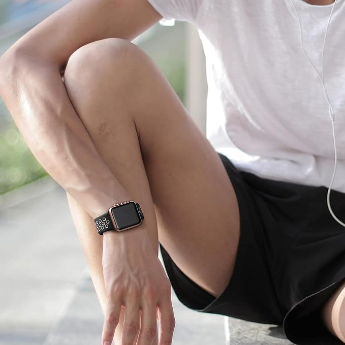 Generic - سوار رياضي من السيليكون مزود بمسامات للتهوية بفتحة مزدوجة متوافق مع ساعة آبل اي ووتش الترا 2 سيريز SE 10 9 8 7 6 5 4 3 2 1 من عنخ جيفت شوب، (42/44/45/46 ملم)