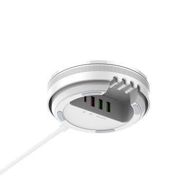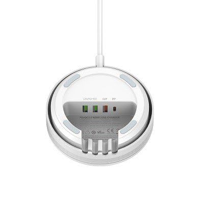 - *طاقة شحن لاسلكية 15 واط × 4 USB شحن سريع: بي دي (30 وات) + كيو سي 3.0 (18 وات) + 2 يو اس بي ايه، إجمالي الطاقة 32 واط *القابس: الولايات المتحدة/الاتحاد الأوروبي/المملكة المتحدة/استراليا للخيار *شاحن واحد للجميع، مناسب للمنزل والمكتب *مادة مقاومة للحريق، سلك كابل قابل للفصل بطول 1.5 متر *وظيفة مقاومة للحرارة (لن يسخن الشاحن اللاسلكي عند وضع أشياء معدنية أو سلاسل مفاتيح عليه. () * شهادة مخصصة يمكن صنعه
