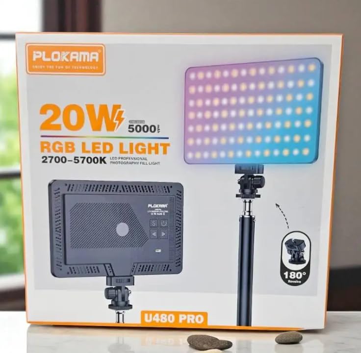 Generic - مصباح LED U480 برو RGB من ايه ان كيه اتش جيفت شوب، مصباح تصوير احترافي 20 واط، درجة حرارة اللون 2700-5700 كلفن، 5000 مللي امبير في الساعة