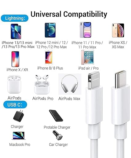 - شحن سريع: تتيح هذه الكابلات شحن سريع يصل إلى 20 واط لأجهزة ايفون وايباد المتوافقة، مما يوفر دفعة سريعة للطاقة.