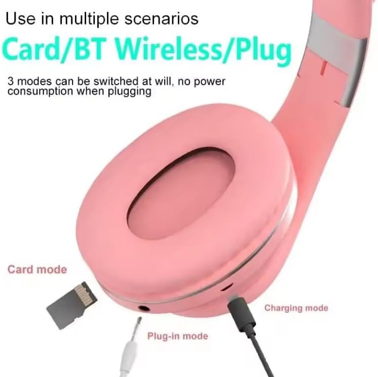 - تصميم لاسلكي: يتميز باتصال بلوتوث من أجل الحرية اللاسلكية، مع جماليات بطابع القط باللون الزهري مثالية للمستخدمين الصغار