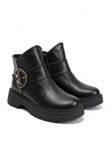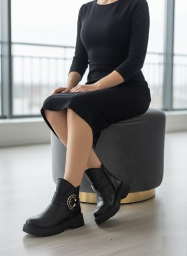 Life Stylish - بوت بطول الكاحل طراز G-55 L من الجلد للنساء
