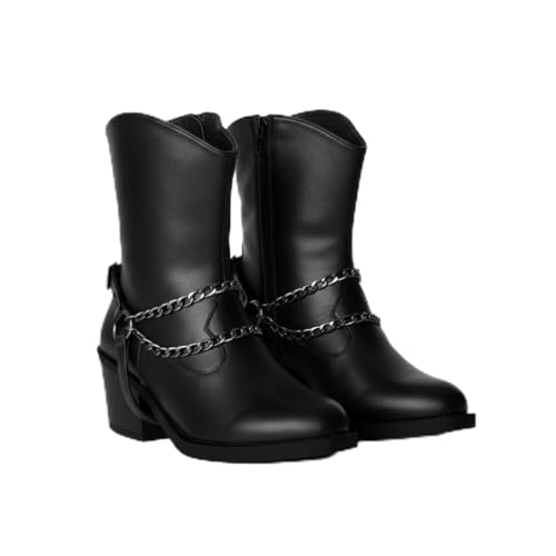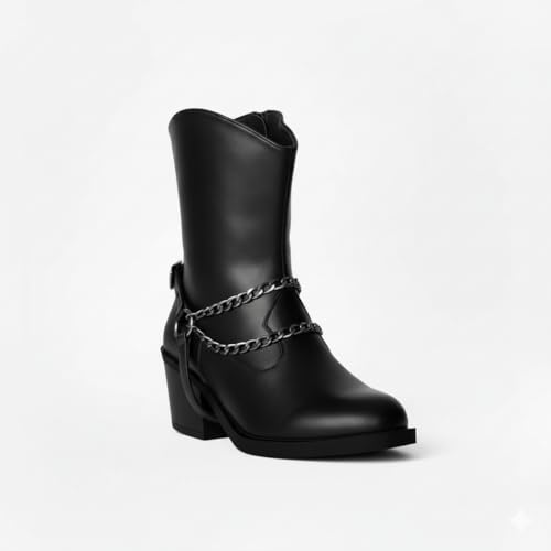 Life Stylish - بوت طول الكاحل من الجلد مع اكسسوارات وسوستة، G-32