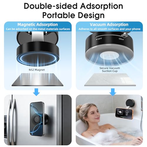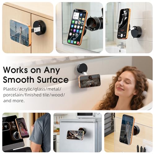 - 【حامل هاتف مغناطيسي مزدوج الجوانب للسيارة】يمكن استخدام حامل الهاتف المغناطيسي المفرغ هذا على كلا الجانبين. يمكن للسطح الممتص بتفريغ الهواء تثبيت الهاتف بإحكام على أي سطح أملس، مثل السيارات والمرايا والجدران والزجاج والمطابخ. يمكن امتصاص السطح المعدني على معدن الحديد، مثل صالات الألعاب الرياضية ومعدات اللياقة البدنية والثلاجات وما إلى ذلك. حرر يديك ويعزز تجربة حياتك اليومية.