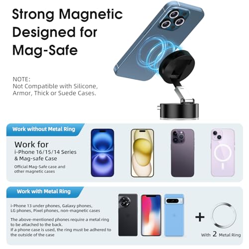 - 【توافق عالمي】حامل الهاتف المغناطيسي الذي يعمل باللصق أنكندو متوافق عالميًا مع معظم الهواتف الذكية. متوافق مع سلسلة ايفون 16 15 14 13 12 برو ماكس بلس ميني والموديلات الأخرى، حلقة معدنية مغناطيسية متضمنة تستوعب الهواتف والحافظات غير المغناطيسية، ما يضمن الثبات في أثناء القيادة على الطرق الوعرة.