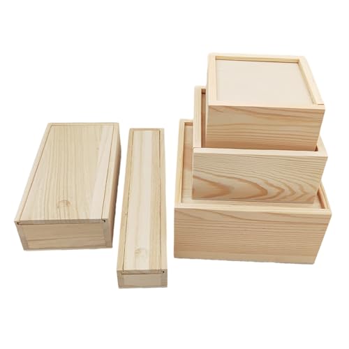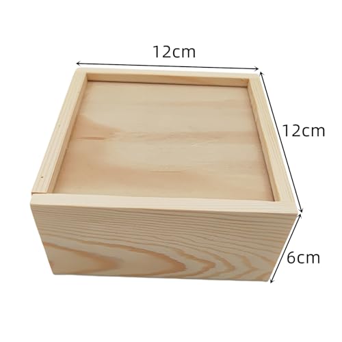 Anktily - انكيلي صندوق تخزين خشبي غير مكتمل مع غطاء منزلق، حاوية فارغة من الخشب الطبيعي للمجوهرات وهوايات الفنون والحرف اليدوية (4.7 × 4.7 × 2.4 انش)