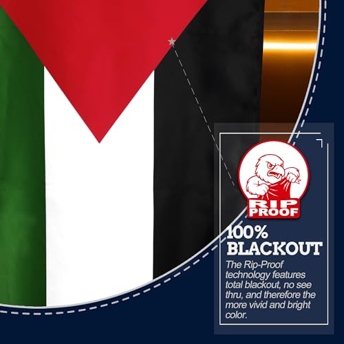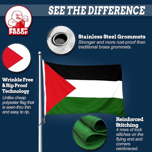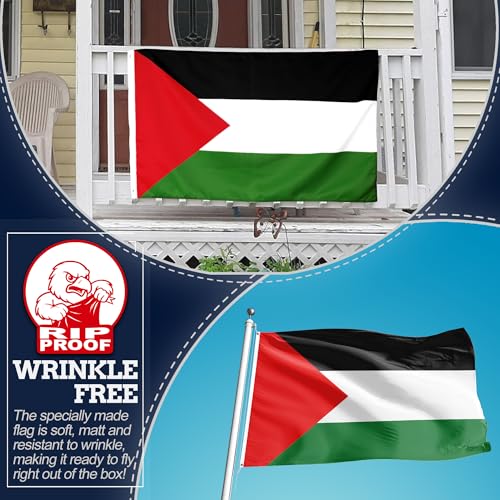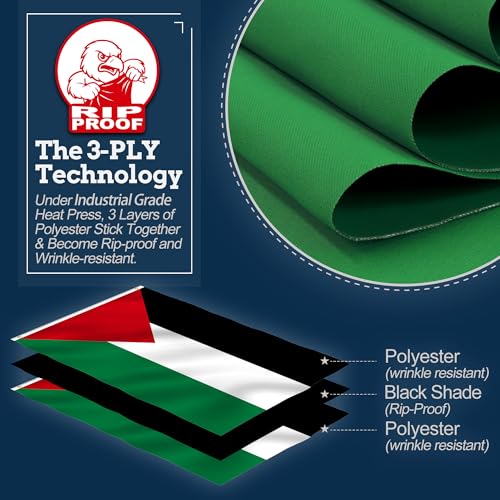 Anley - علم فلسطين مقاوم للتمزق ومزدوج الجوانب مكون من 3 طبقات، رأس قماش ومقاوم للتجاعيد ومن أقوى وأطول أعلام فلسطين الوطنية عمرًا من آنلي، 91.4 سم × 1.52 م، زاهي