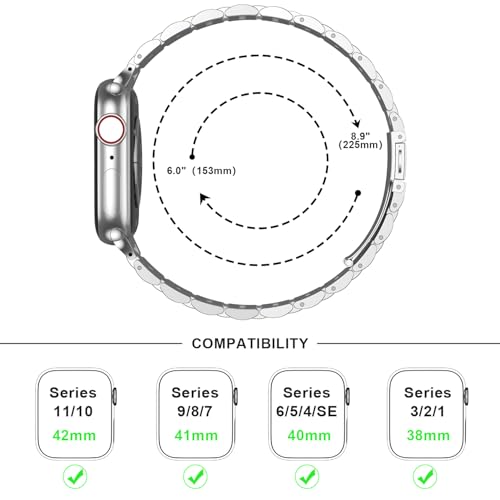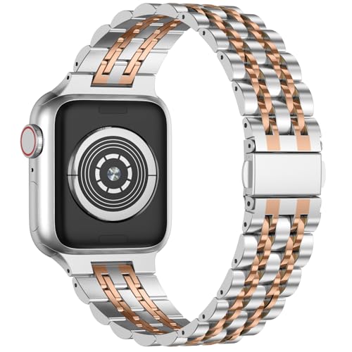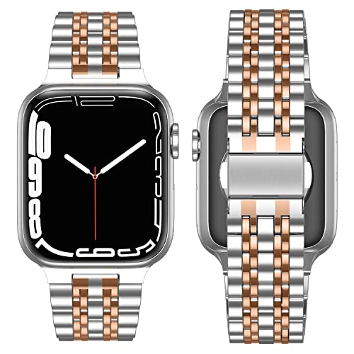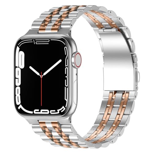 Anlinser - سوار معدني من انلينسر متوافق مع ساعة ابل 45 ملم 44 42 41 40 38 بديل فولاذ مقاوم للصدأ قابل للتعديل لسلسلة اي ووتش 7/6/5/4/3/2/1/SE