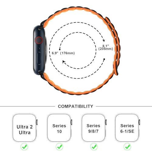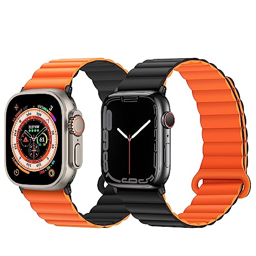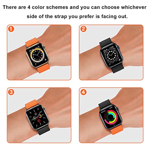 Anlinser - انلينسر اساور متوافقة مع سوار ساعة ابل 45 ملم 44 ملم 42 ملم 41 ملم 40 ملم 38 ملم، سوار مغناطيسي بوجهين قابل للعكس مع حلقة لساعة اي ووتش اس اي سلسلة 7 6 5 4 3 2 1 (45 ملم/44 ملم/42 ملم، اسود/برتقالي)