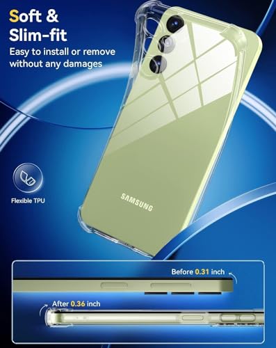 - 【عبوة من 3 قطع】: تتضمن العبوة المطورة 1 × جراب موبايل شفاف، 1 × واقي شاشة من الزجاج المقوى، جراب سيليكون شفاف لموبايل سامسونج جالاكسي A55 الجيل الخامس.