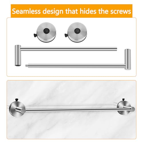 - 【مادة فاخرة】مصنوع من الستانلس ستيل عالي الجودة SUS304، مقاوم للتآكل والصدأ ليدوم طويلاً، مناسب جدًا للاستخدام في البيئة الرطبة؛ يوفر قضيب المنشفة الفردي مقاس 60 سم لمسة نهائية مصقولة مع لمسة ناعمة لحماية الأقمشة بشكل أفضل من العوائق أو التمزق؛ متين لتحمل الخدوش اليومية والتقشير والبهتان.